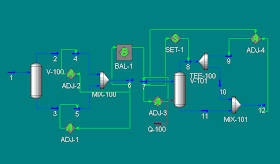HYSYS : SPLIT stream 8 into stream 9 and 10. Mix stream 9 & stream 11 form stream 12. ADJUST stream 9 Mass Flow (m1) to obtain Stream 12 Overall Actual Volumetric Flow to V0.